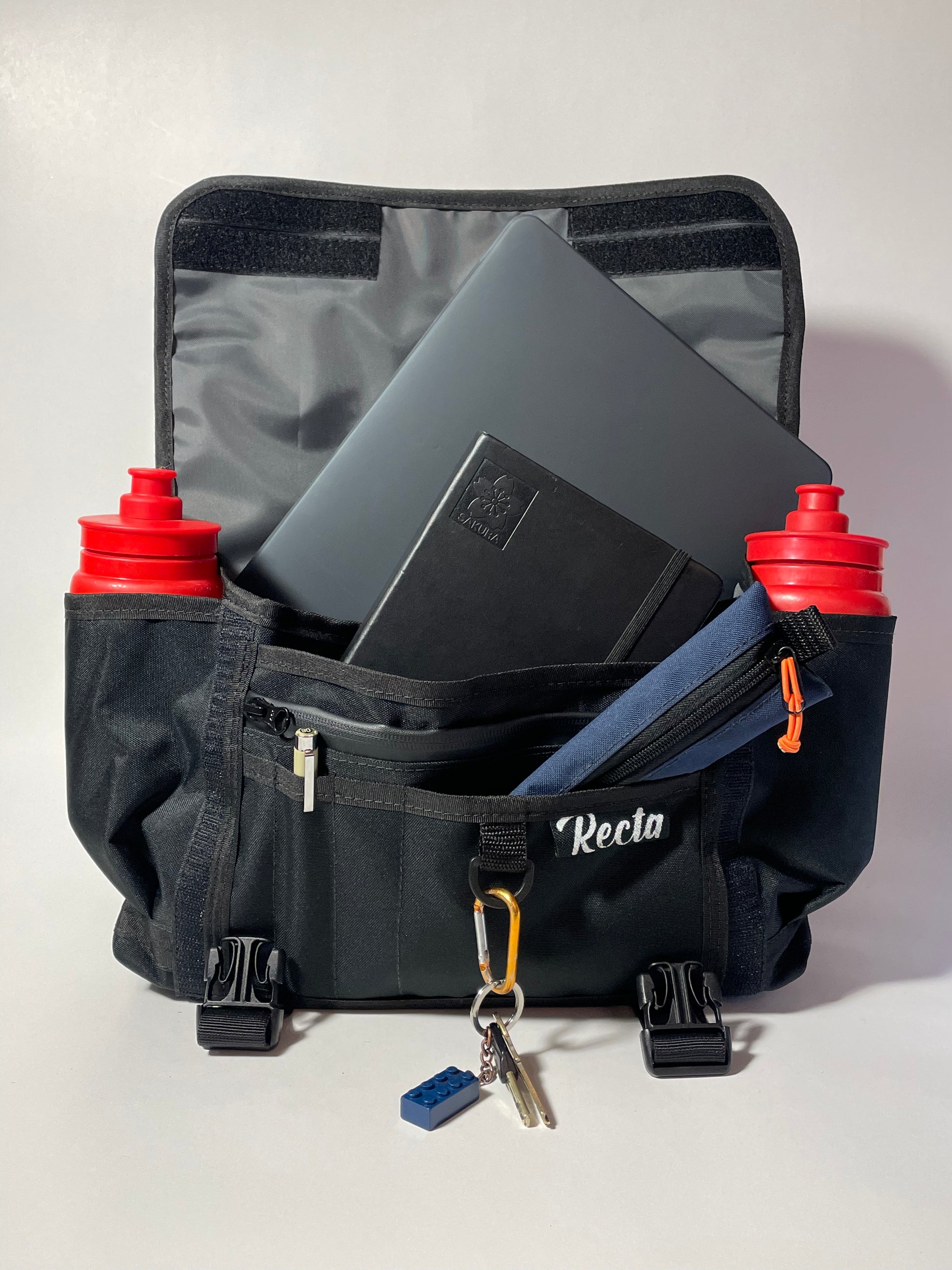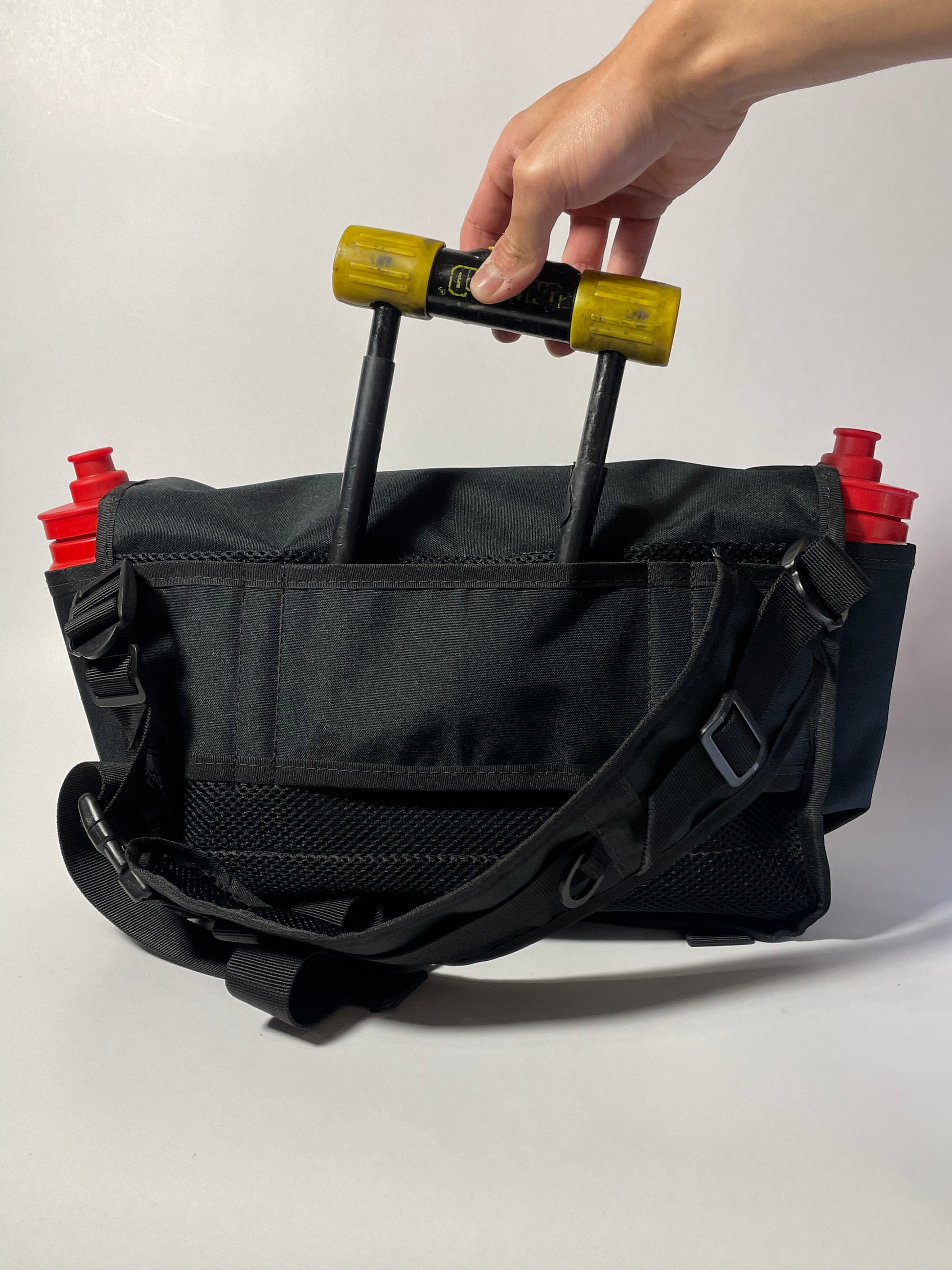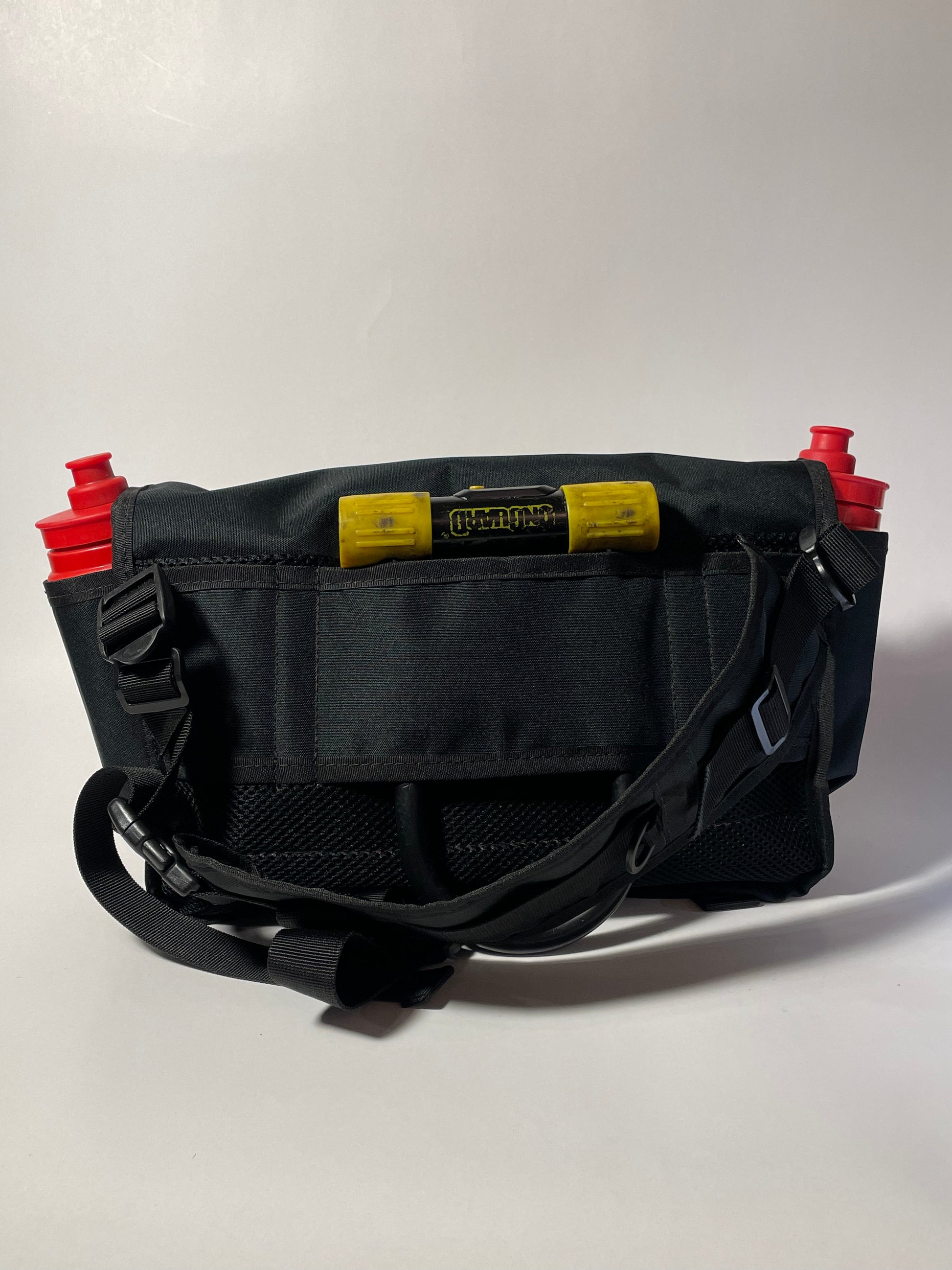 El Mini-Mess es un bolso con 3 puntos de apoyo que se utiliza cruzado con correas desmontables te permite usarlo de izquierda a derecha o de derecha a izquierda. posee varios bolsillos organizadores para llevar todo lo necesario al trabajo, universidad o incluso entrenamiento. También tiene un espacio especifico para botellas en los laterales y en la parte de atrás un espacio para el candado U-lock.